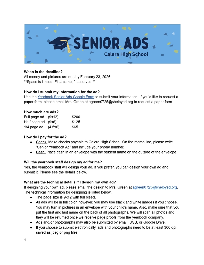 Class Fees: Class Fees can be paid online, by teacher last name. Follow the link: bit.ly/cahsclassfees