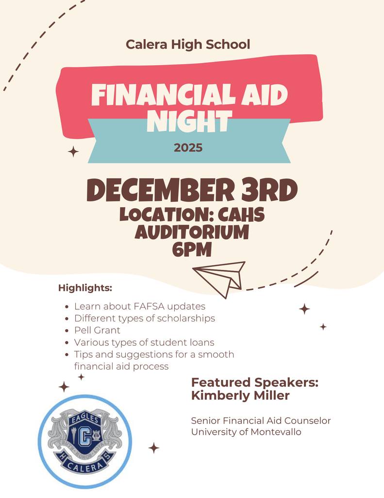 Drop Off Items: Calera High does NOT accept drop off items for students from parents/family/friends, etc in the front office. Please make sure you student has everything needed for the school day and for any after school events before he or she leaves for school in the morning.
